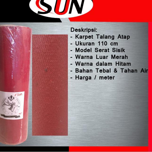 Dengan memakai karpet genteng anda tak perlu takut akan rembesan air hujan akan masuk melalui celah pembatas antara dinding bangunan dan genteng. Karpet talang ukuran lebar 110 cm model serat sisik warna dalam hitam warna luar merah bahan tebal dan anti air cocok untuk sambungan atap atau genteng.