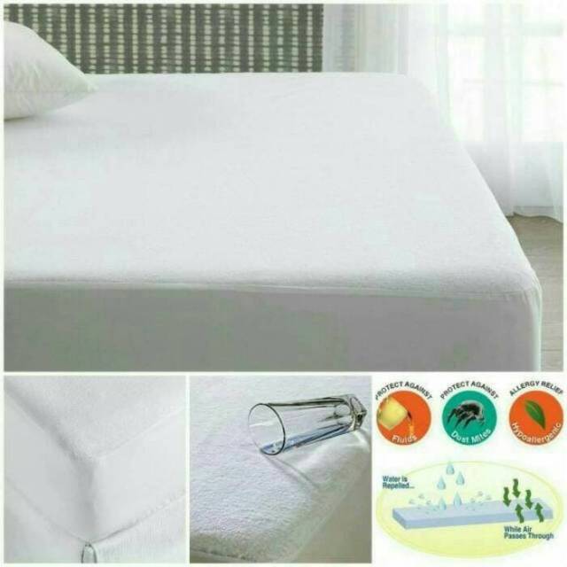 Pelindung kasur tahan air. Sangat cocok digunakan bagi yang memiliki bayi dan lansia. Juga tersedia untuk bantal guling. Selain nyaman digunakan pelindung kasur dan bantal dapat dilepas dengan mudah dan dicuci dengan mesin. Matras kasur anti air sarung kasur anti air alas kasur tahan air pelindung kasur tahan air perlak kasur anti air matras protector waterproof pelapis kasur spring bed matras protector yang bagus.